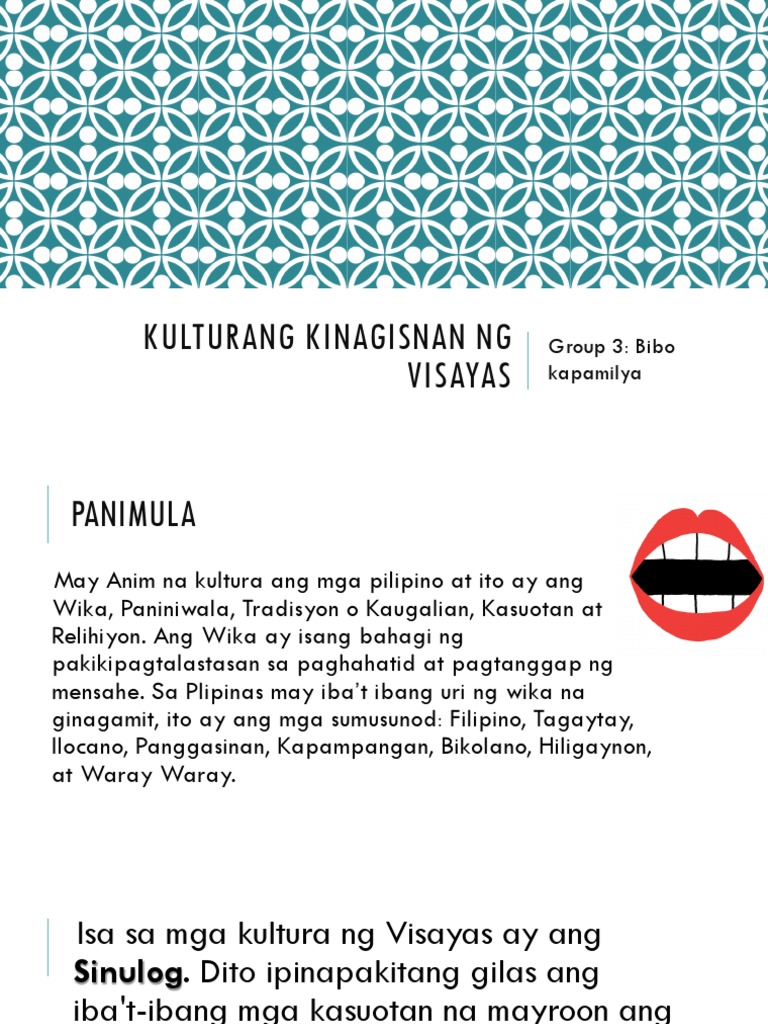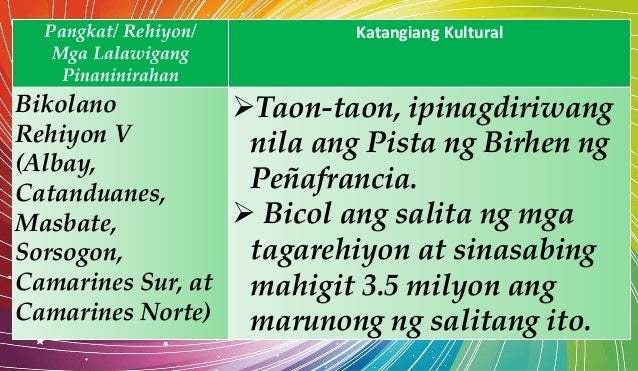 Ginagamit rin ito sa mga grupo ng isla sa Panay at probinsiya na rin tulad ng Capiz Antique Aklan Guimaras at mga parte ng Mindanao tulad ng Koronadal Timog Cotabato Sultan Kudarat at gayundin ang malalaking parte ng Hilagang Cotabato. Ano ang paniniwala ng kultura ng pilipinas. Kilala ang mga taga-Iloilo bilang mga Ilonggo at Ilonggo din ang kanilang wika na pormal na kilala bilang Hiligaynon.