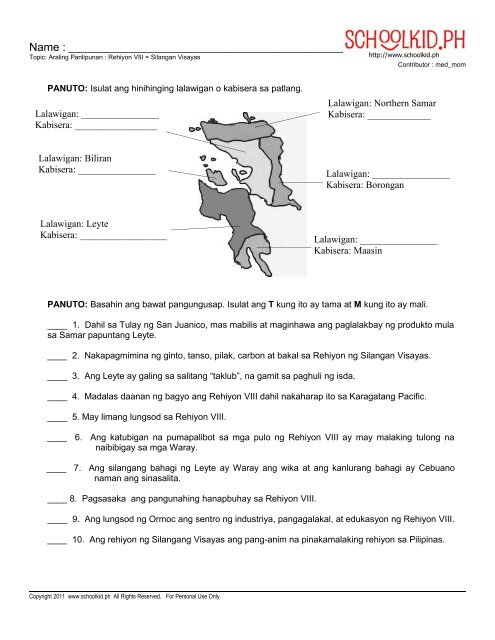 Mga Rehiyon ng Pilipinas Ang Kabisayaan ay isa sa tatlong pangunahing pangkat ng mga pulo sa Pilipinas. Nasa rehiyong ito ang kabisera o kapitolyo ng bansa. Probinsiya ay ang pangunahing yunit ng lokal na pamahalaan.